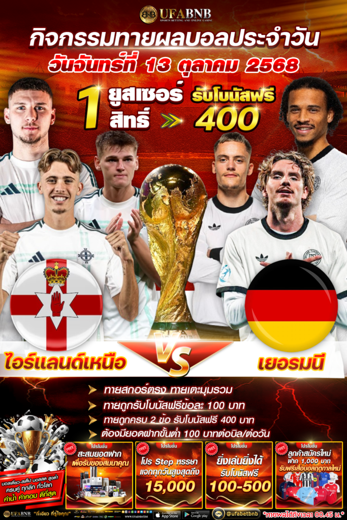กิจกรรมทายผลฟุตบอล รับโบนัสเครดิตฟรี 400 บาท ระหว่าง ฮั