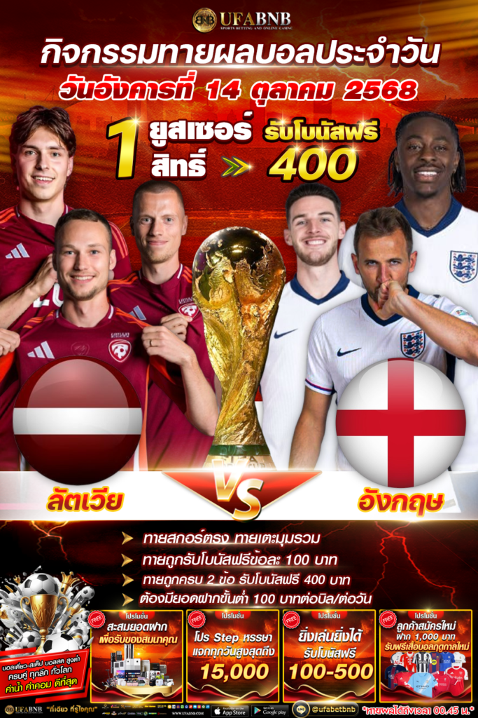 กิจกรรมทายผลฟุตบอล รับโบนัสเครดิตฟรี 400 บาท ระหว่าง ลั