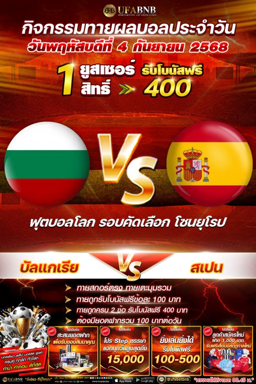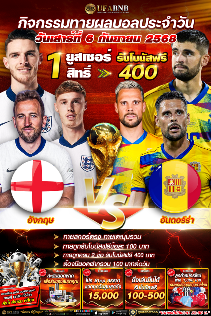 กิจกรรมทายผลฟุตบอล รับโบนัสเครดิตฟรี 400 บาท ระหว่าง อั