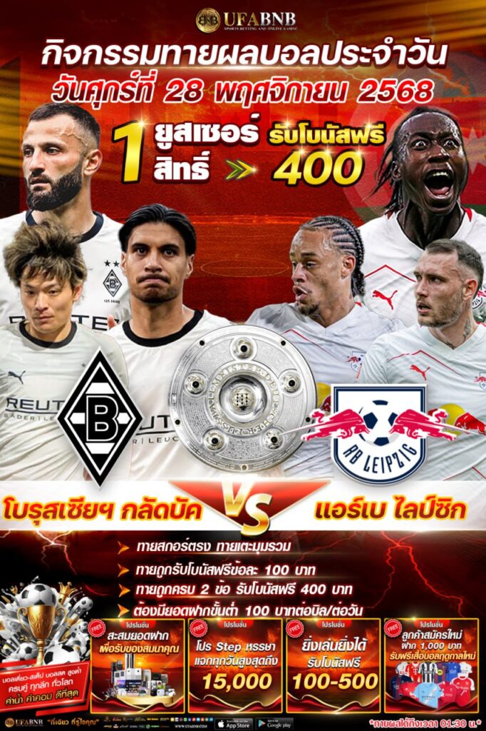 กิจกรรมทายผลฟุตบอล ระหว่าง โบรุสเซียฯ กลัดบัค⚽️ แอร์เบ ไลป์ซิก ลุ้นรับโบนัสเครดิตฟรี 400 บาท (27/11/68)