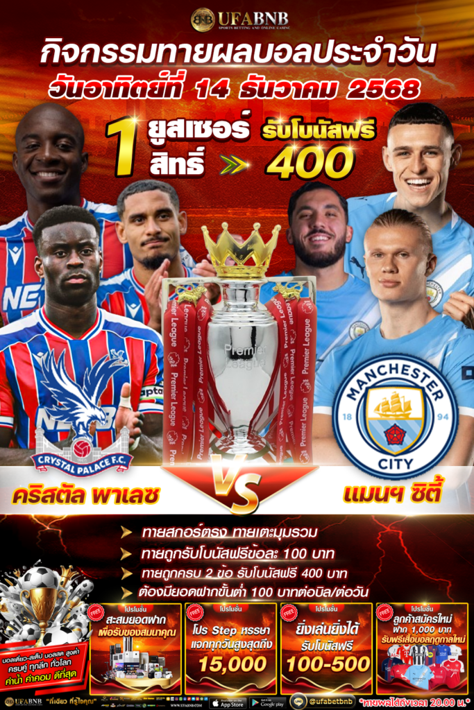 กิจกรรมทายผลฟุตบอล คริสตัล พาเลซ ⚽️ แมนฯ ซิตี้ ลุ้นรับโ