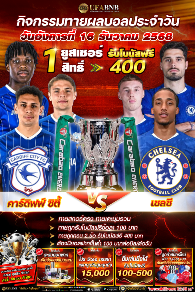 กิจกรรมทายผลฟุตบอล คาร์ดิฟฟ์ ซิตี้ ⚽️ เชลซี ลุ้นรับโบนั