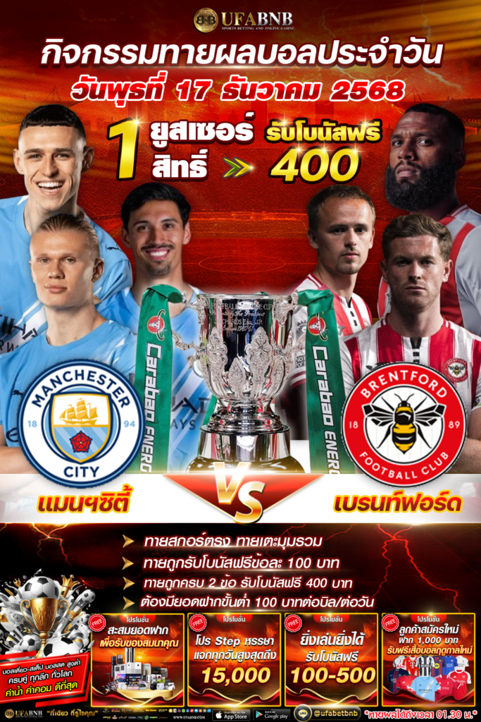 กิจกรรมทายผลฟุตบอล แมนฯ ซิตี้ ⚽️ เบรนท์ฟอร์ด ลุ้นรับโบน