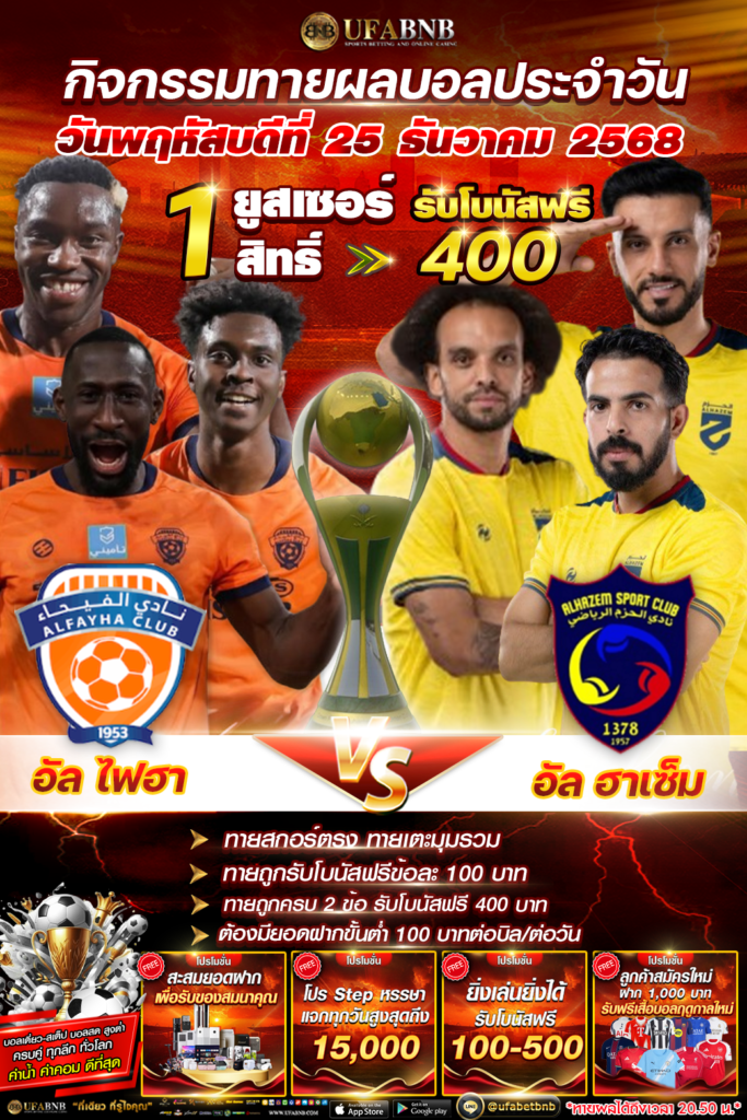 กิจกรรมทายผลฟุตบอล อัล-ไฟฮา ⚽️ อัล ฮาเซม ลุ้นรับโบนัสเค