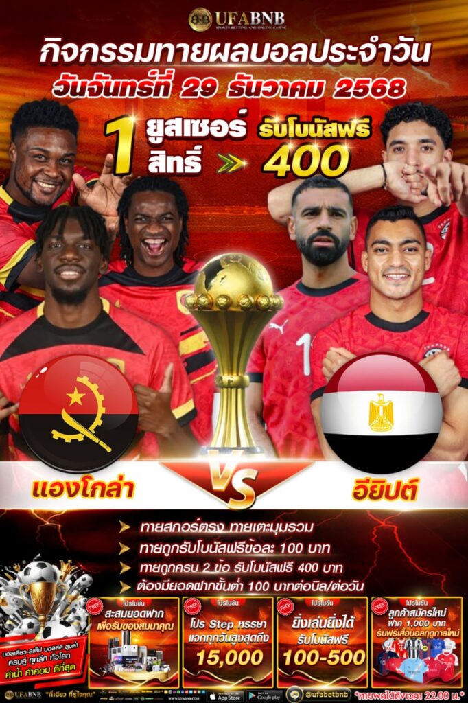 กิจกรรมทายผลฟุตบอล แองโกล่า ⚽️ อียิปต์ ลุ้นรับโบนัสเครด