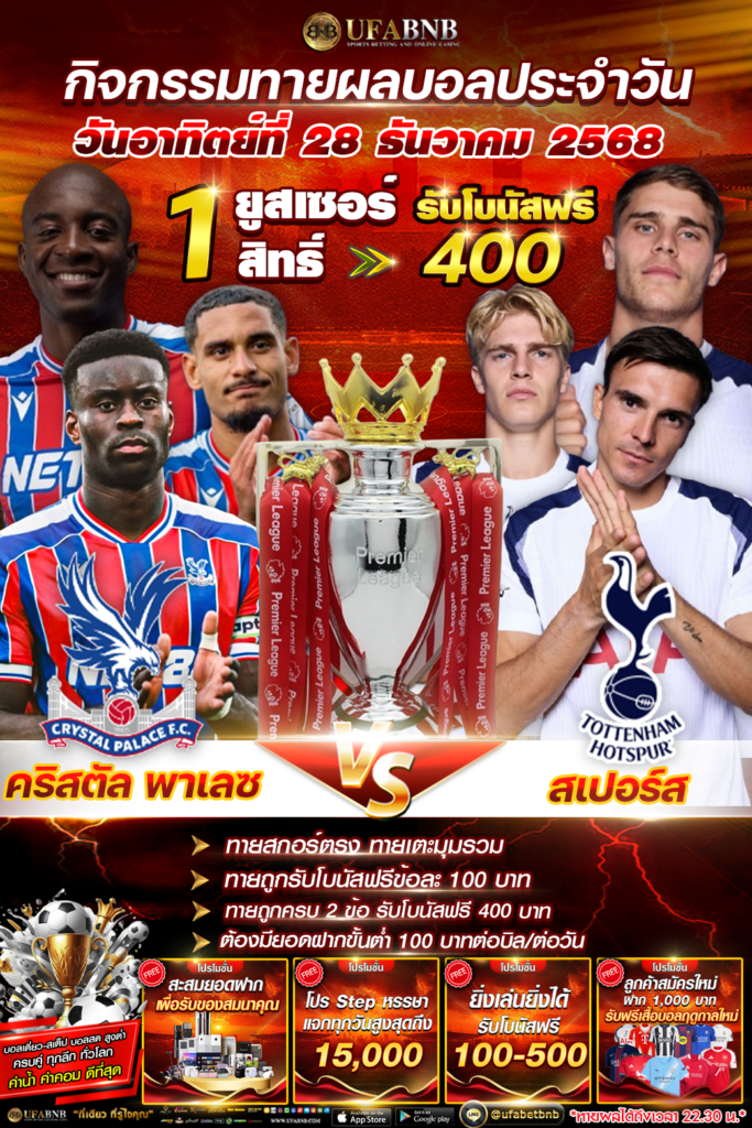 กิจกรรมทายผลฟุตบอล คริสตัล พาเลซ ⚽️ สเปอร์ส ลุ้นรับโบนั