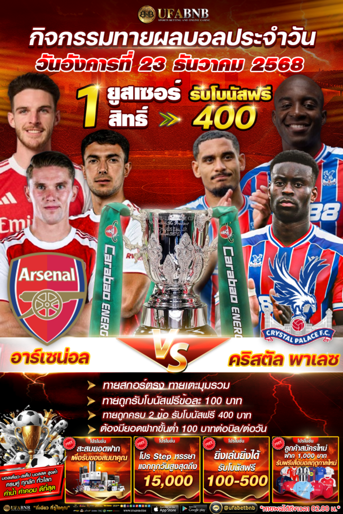 กิจกรรมทายผลฟุตบอล อาร์เซน่อล ⚽️ คริสตัล พาเลซ ลุ้นรับโ