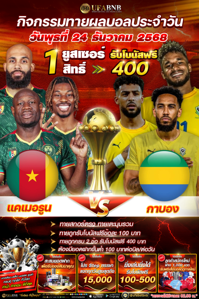 กิจกรรมทายผลฟุตบอล แคเมอรูน ⚽️ กาบอง ลุ้นรับโบนัสเครดิต